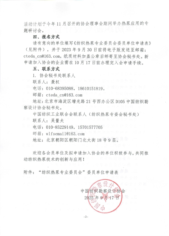 关于协会成立“纺织热泵专业委员会”的通知